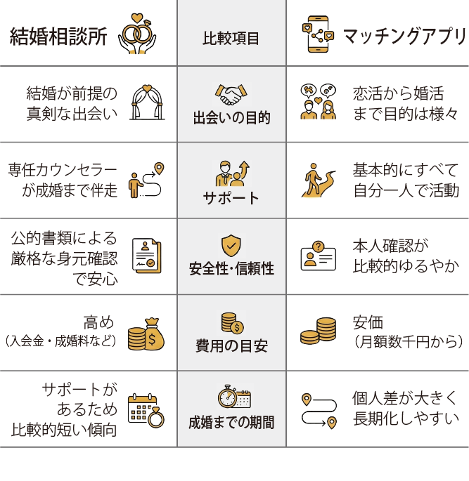 結婚相談所 vs マッチングアプリ徹底比較