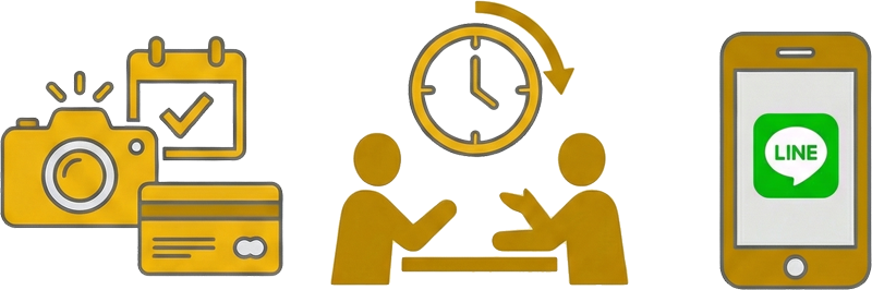 ご入会のご決断をされましたら、写真撮影やご契約日時の調整、お支払い方法の確認など、正式なお手続きとファーストカウンセリング(所要1.5〜2時間)に向けた準備をご案内させていただきます。