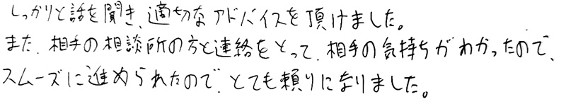 しっかりと話を聞き、適切なアドバイスを頂けました。